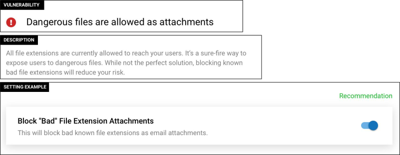 Consult the following explanations to understand what the vulnerabilities in your report mean, and learn which recommended Office Protect setting protects you against them.